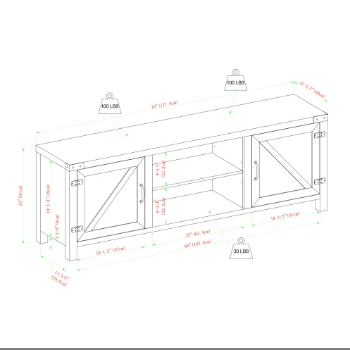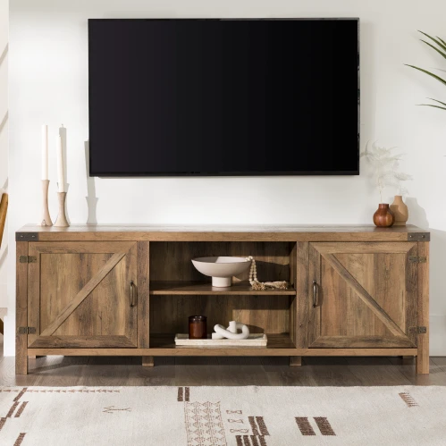 Product Name:Rustic Farmhouse Double Barn Door 70" TV Stand for 80" TVs with Center Shelves - Rustic Oak